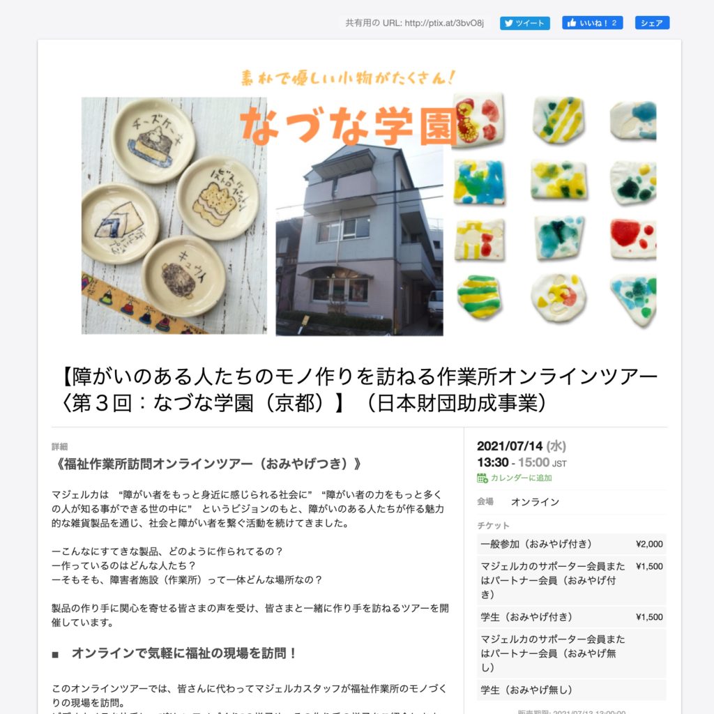 “オンラインスタディツアー”というのは、私たちマジェルカのスタッフが各地の作業所さんを訪問させて頂き、そこの場所やヒトや活動の様子を現地からzoomで配信、お客様は、画面越しではありますが取材者(私フジモトがやってますが)と同じ目線で自宅などからオンラインで作業所訪問を体験できます。