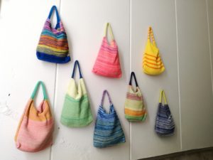つい先日もここでナベが紹介した「ニット工房ライク」さんのニットバッグ。
