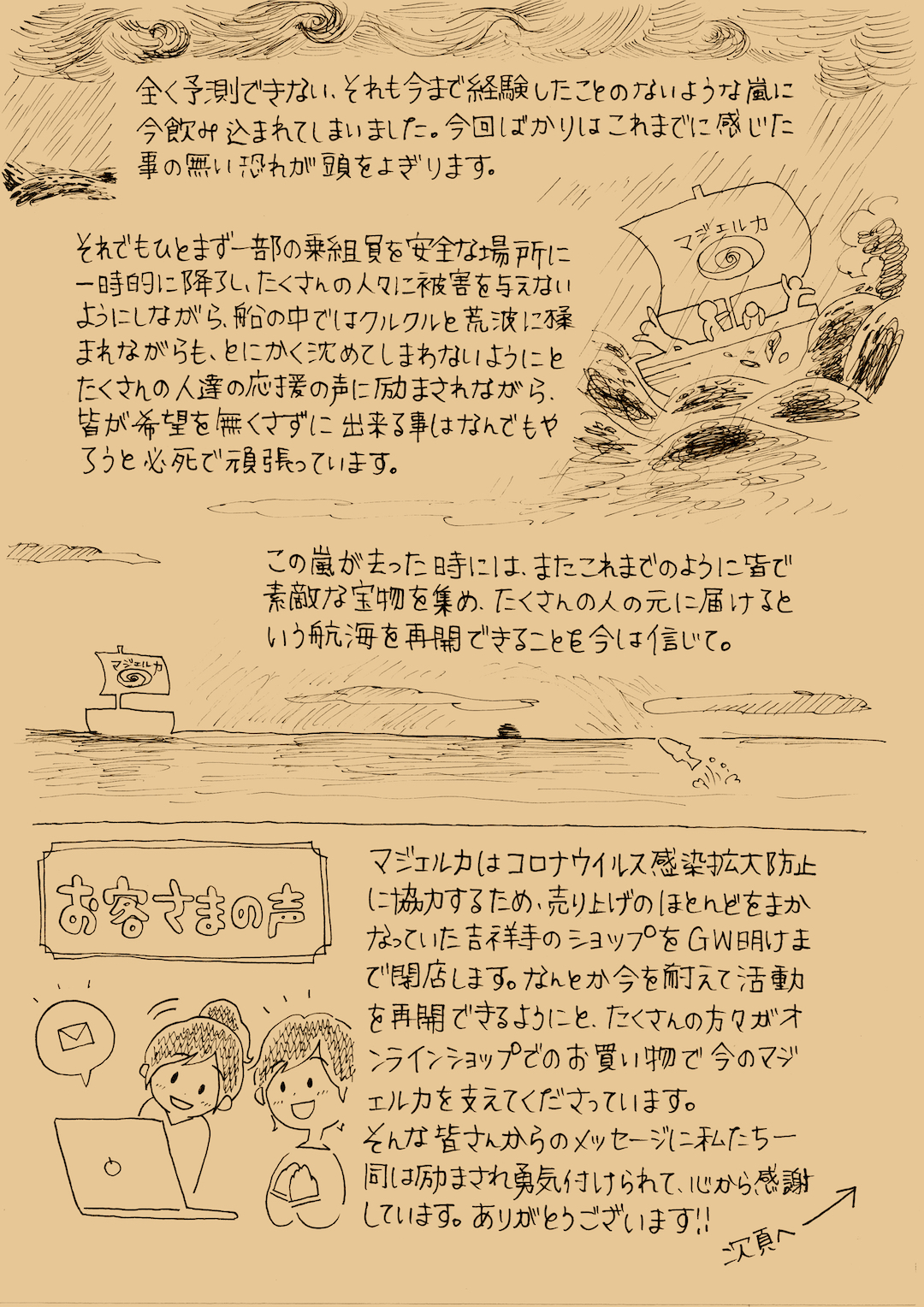 お客様に直接お配りしたくて作り始めた「マジェルカ新聞」ですが、営業自粛している今、残念ながらそれが出来ないのでオンライン上でお読みいただく前提で横書きで作成した特別号になります。