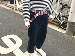 玉川福祉作業所さんで細かく織ってもらった裂き織りの生地を、丁寧な革細工をしている東大和市の「第二あとりえトントン」さんで加工したマジェルカのオリジナル商品。さまざまな色が織りなすベルトは同じモノが二つとない全てが一点モノ。普段の服装のアクセントに使え、個性的なオシャレが楽しめます^^