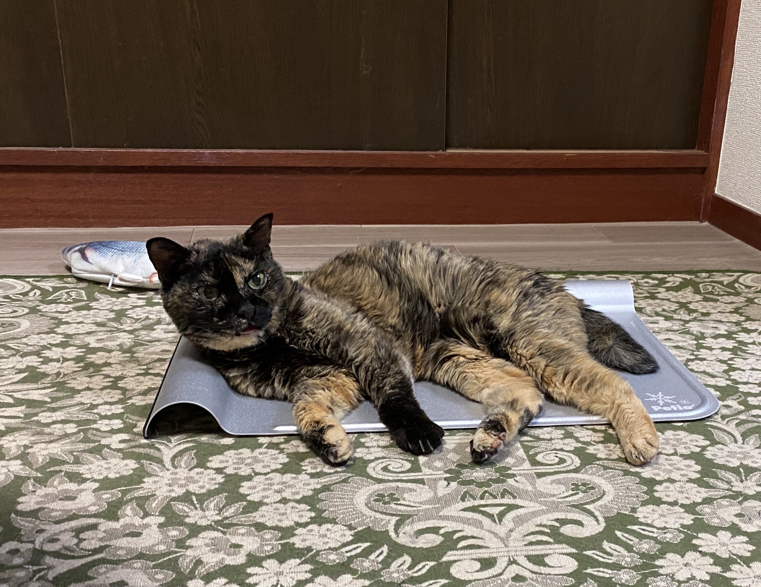 何故なら、今年のこの連日の猛暑の中、室内で留守番をしなければならない愛猫ネネのために買ってきた、まぁまぁごっついアルミ製の“ひんやりマット”(的な名前の代物)。