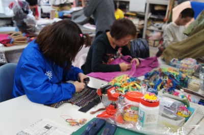しかしふみちゃん、ほとんど席に座ってません。一時もだまっていません。 アグレッシブに私にも絡みまくってきます゚(゚´Д`゚)゚ お願いしてる刺繍バッグが中々出来上がらないのも納得しました。トホホ・・・ さて次はフロアを移動して「アトリエnon」に。 しかし!書くこと見てもらいたいことが有りすぎて長くなってしまいました。 まだまだ続くこの先は次回へ! いつまでもウロウロしていたから見れたのですが、時間が過ぎても残って作業している 方がいらっしゃいました。 でもそれはノルマがこなせないとかじゃなくて(そもそもそれで利用者さんが残業するってことは通常無い)自分の意思で、ですって。その彼女も好きなんです、この仕事。 「ワルガキだから居残り作業してるんですよ!」って言う佐々木さんと、それにプクッと ふくれっ面したこの方とのふざけたやり取りの中にも何かほのぼのしたモノを感じました。 お知らせです! ①11/26(土)13:30~(予定)あの studioCOOKA http://www.studiocooca.com/の 絵本作家さやかの紙芝居「ピ・ヨンジュとオレ三世のハワイだいそうどう」マジェルカにて 公演決定! ②今週は11/15(火)は通常通り営業致します。翌11/16(水)をお休みとさせて頂きます。