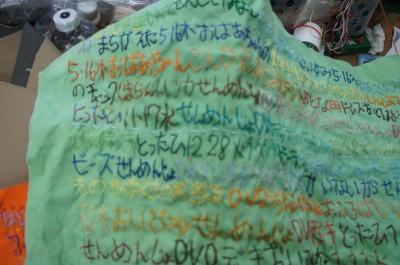 彼女にとっては日記みたいなモノで、いつもこういう言葉達を縫っているそう。