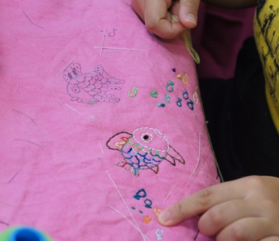 一生懸命刺繍してます。