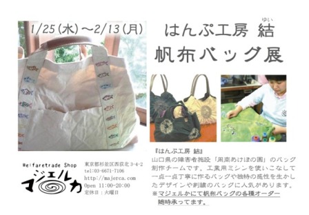 昨日ご案内した「はんぷ工房結の帆布バッグ展」