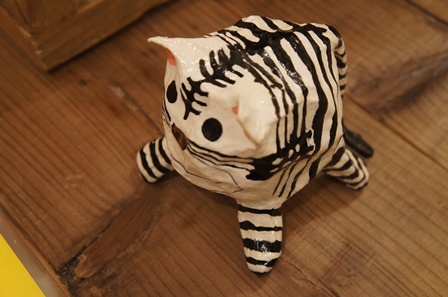 張り子で作ったバッジです。