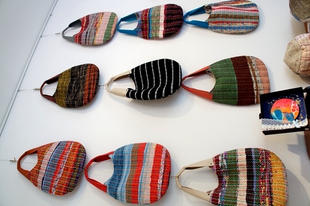 手織り、裂き織りを使ったバッグ。
