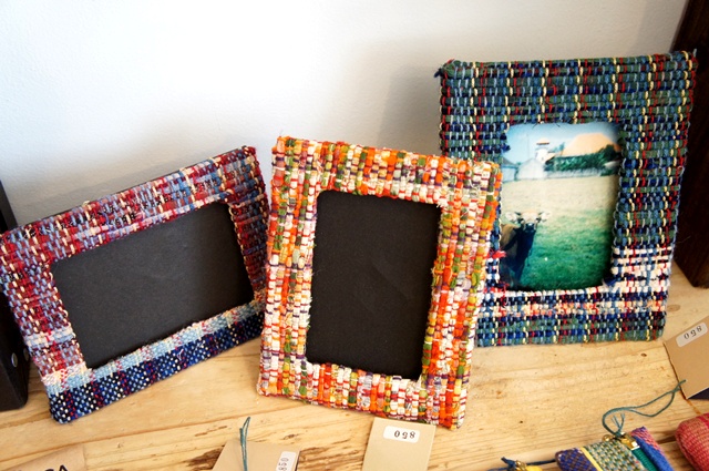 もひとつ額飾りの横にあるのは裂き織り生地でくるんだカゴバッグ。