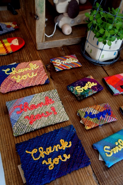 姫路の「さをり工房ゆう」さんのさをり織りの封筒、ハガキとカードサイズあります。