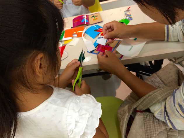 このワークショップ、とてもいいなと思ったのはお母さんお子さんが一緒に共同作業が出来るという所。